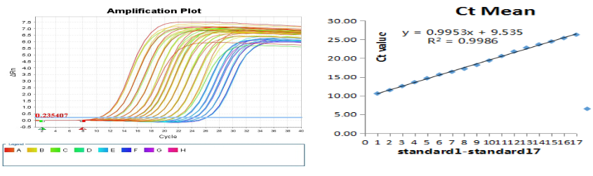 第一步: 94 °C15分鐘;第二步:95 °C10 秒,55 °C 35 秒,45 個循環; 熒光素設定為FAM在反應程序的第二步55°C末讀取熒光值。