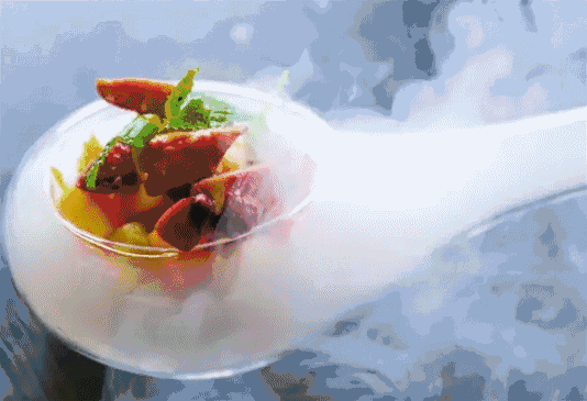 “分子料理就是將食物的味道以分子為單位進行處理和呈現,打破食材原貌重新搭配和塑形,創造出與眾不同的食用體驗…”這個定義聽起來是不是一臉懵逼,看不懂沒關系,我來舉個栗子吧。