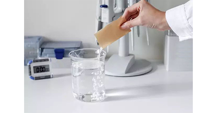 用多道移液器吸取西瓜汁,打入氯化鈣溶液中,靜置1min。